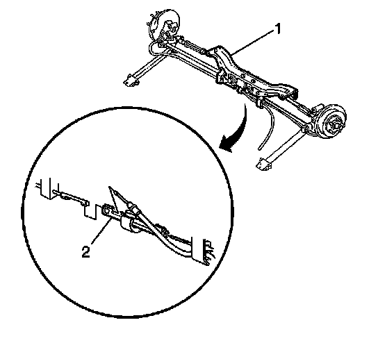 11. Tighten the nut on the equalizer (2) in order to remove slack in the cable.