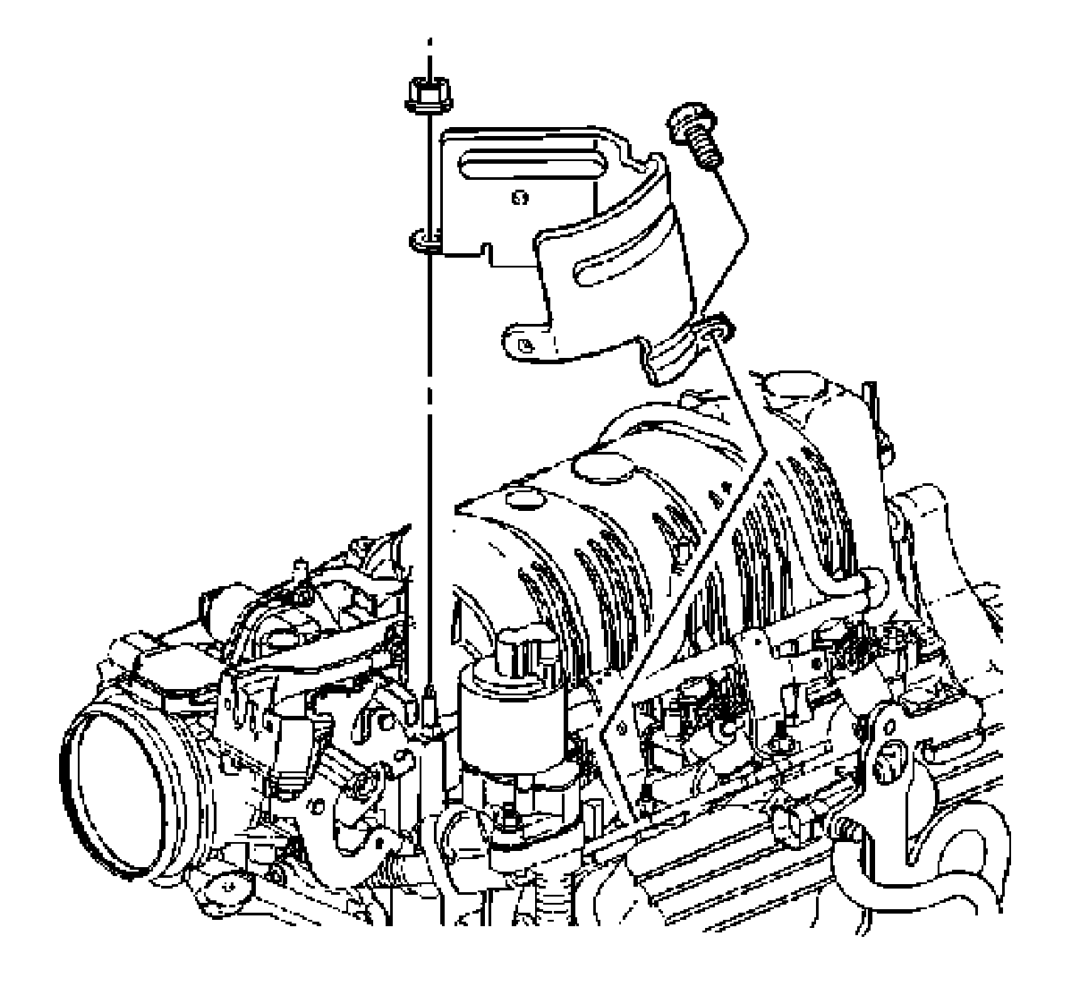 5. Install the transmission fluid filler tube bracket retainer and reposition the filler tube.