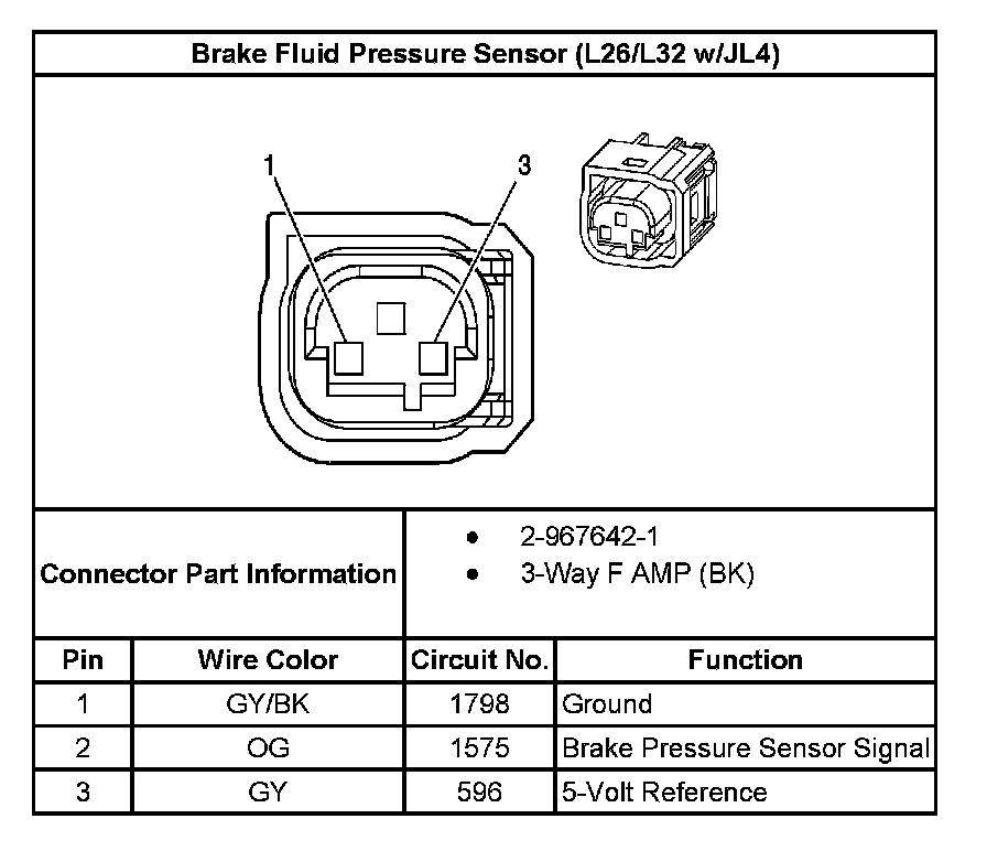 Brake Fluid Pressure Sensor (L26/L32 W/JL4):
