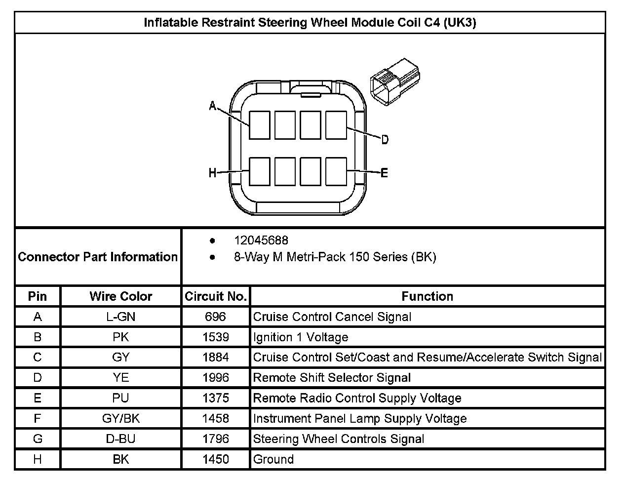 Inflatable Restraint Steering Wheel Module Coil C4 (With RPO Code UK3):