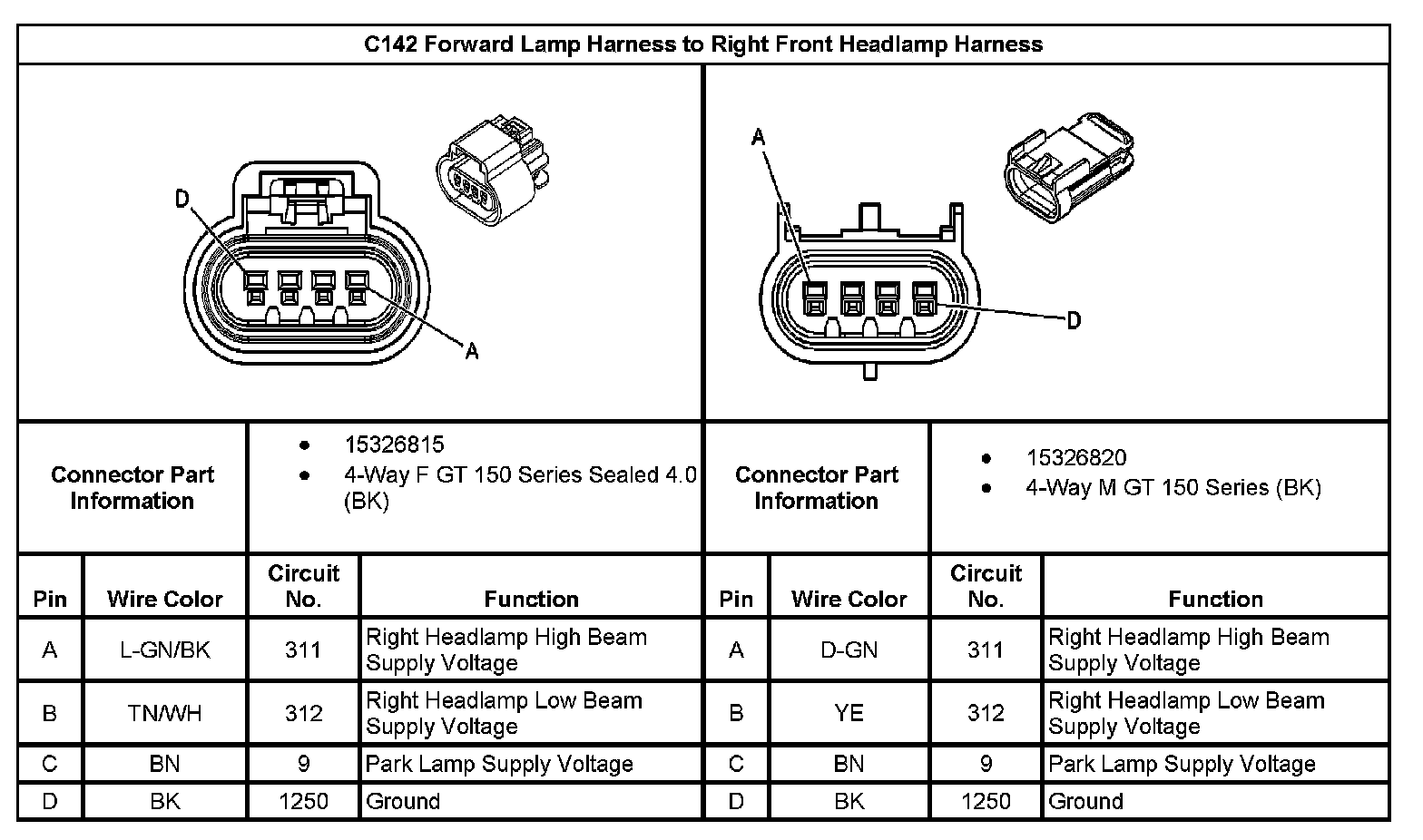 C142 Forward Lamp Harness To Right Front Headlamp Harness: