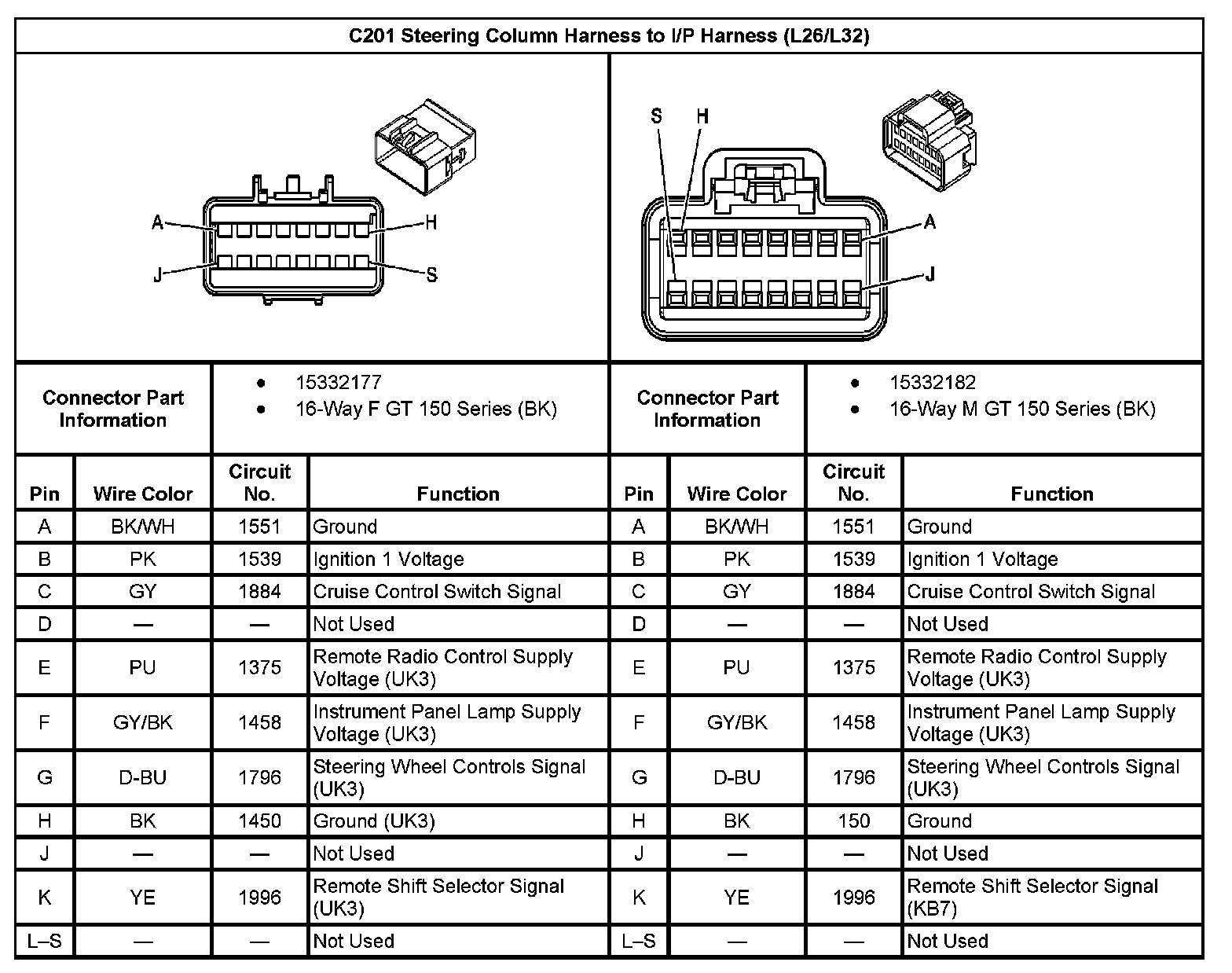 C201 Steering Column Harness To I/P Harness: