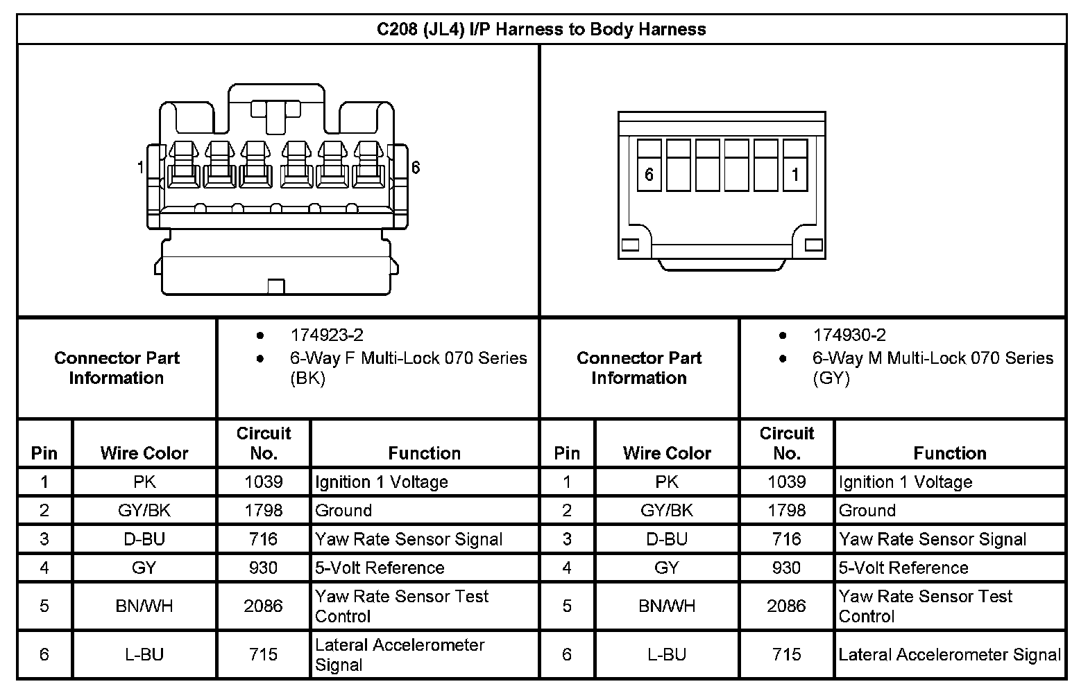 C208 (With RPO Code JL4) I/P Harness To Body Harness: