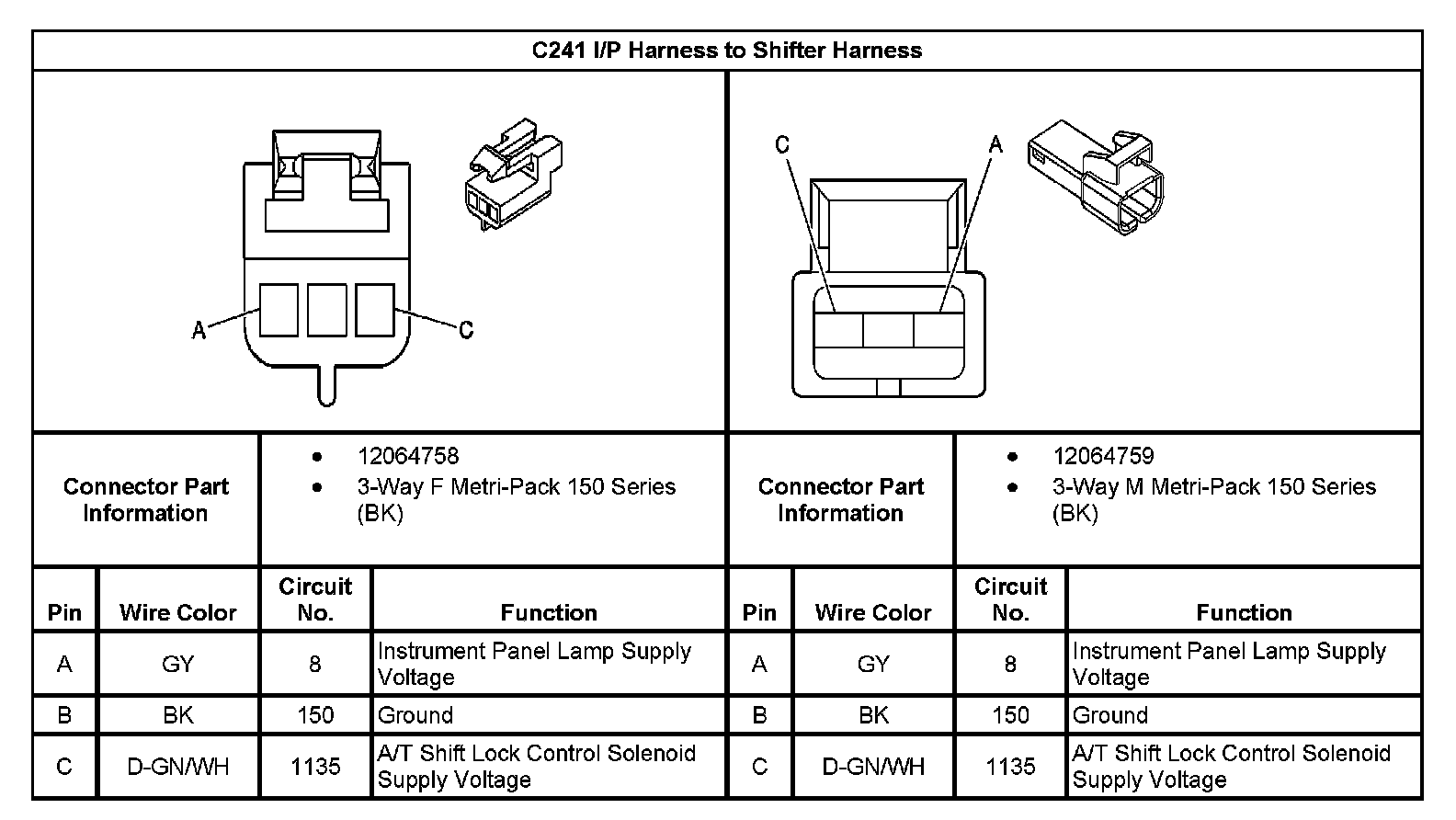 C241 I/P Harness To Shifter Harness: