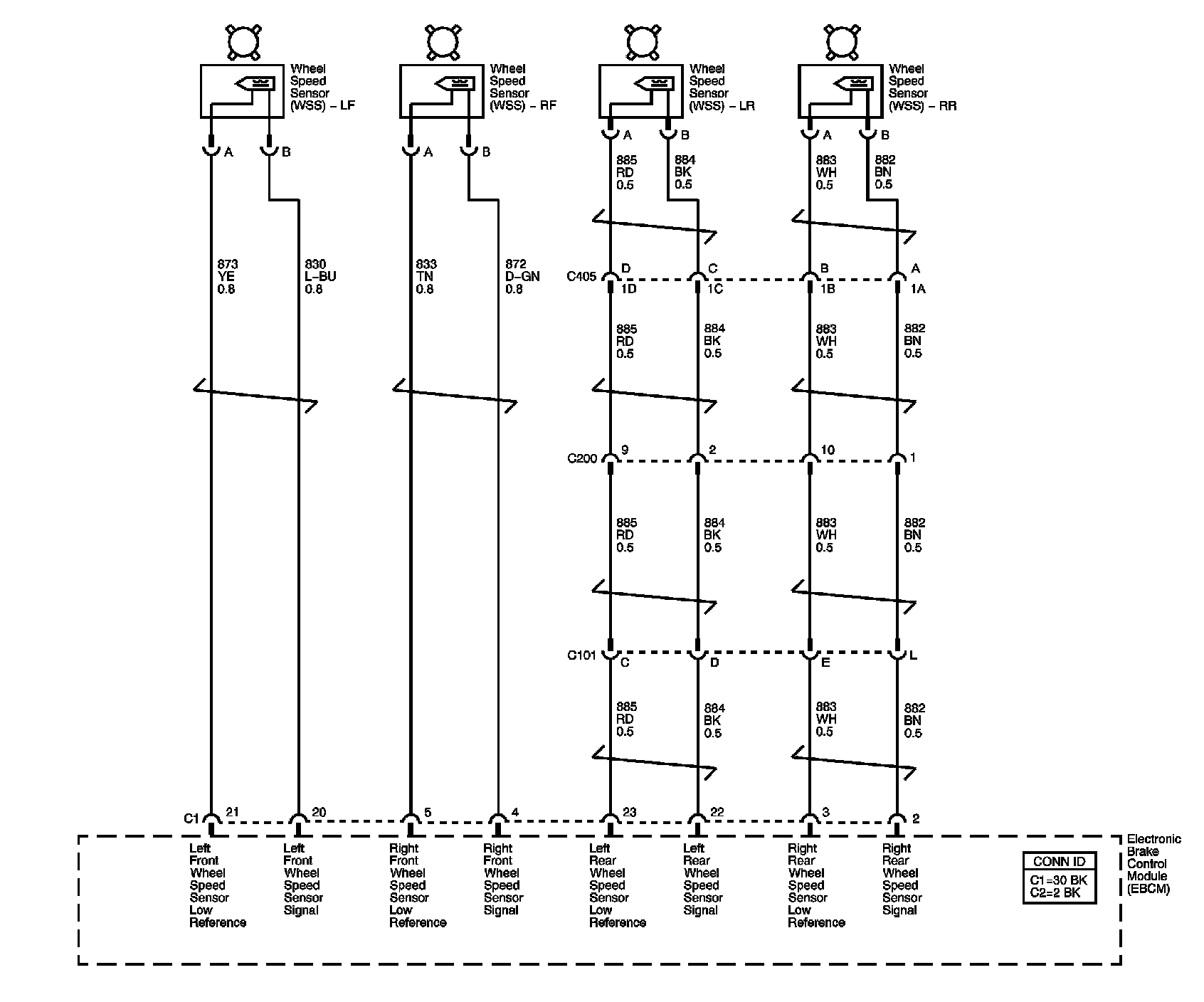Location: The locations for the Connectors, Ground, Splices, and Grommets shown within these diagrams can be found via their numbers at Vehicle Locations. Locations