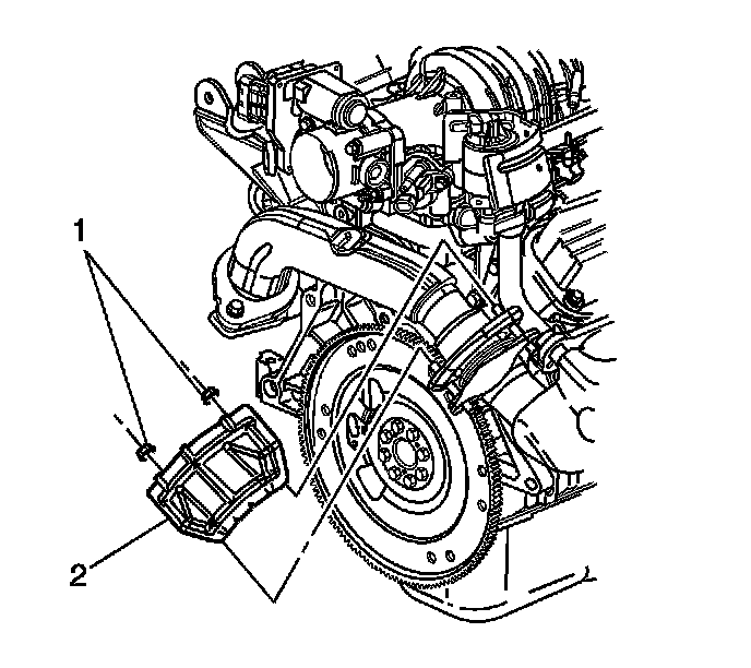 4. Remove the exhaust crossover heat shield (2).