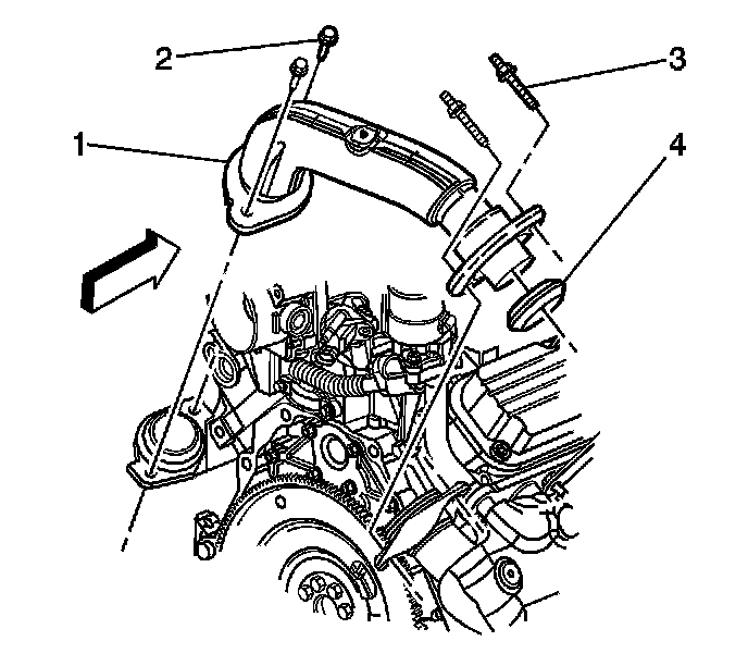 1. Install the exhaust crossover pipe seal (4) to the exhaust crossover pipe (1) at the right exhaust manifold connection.