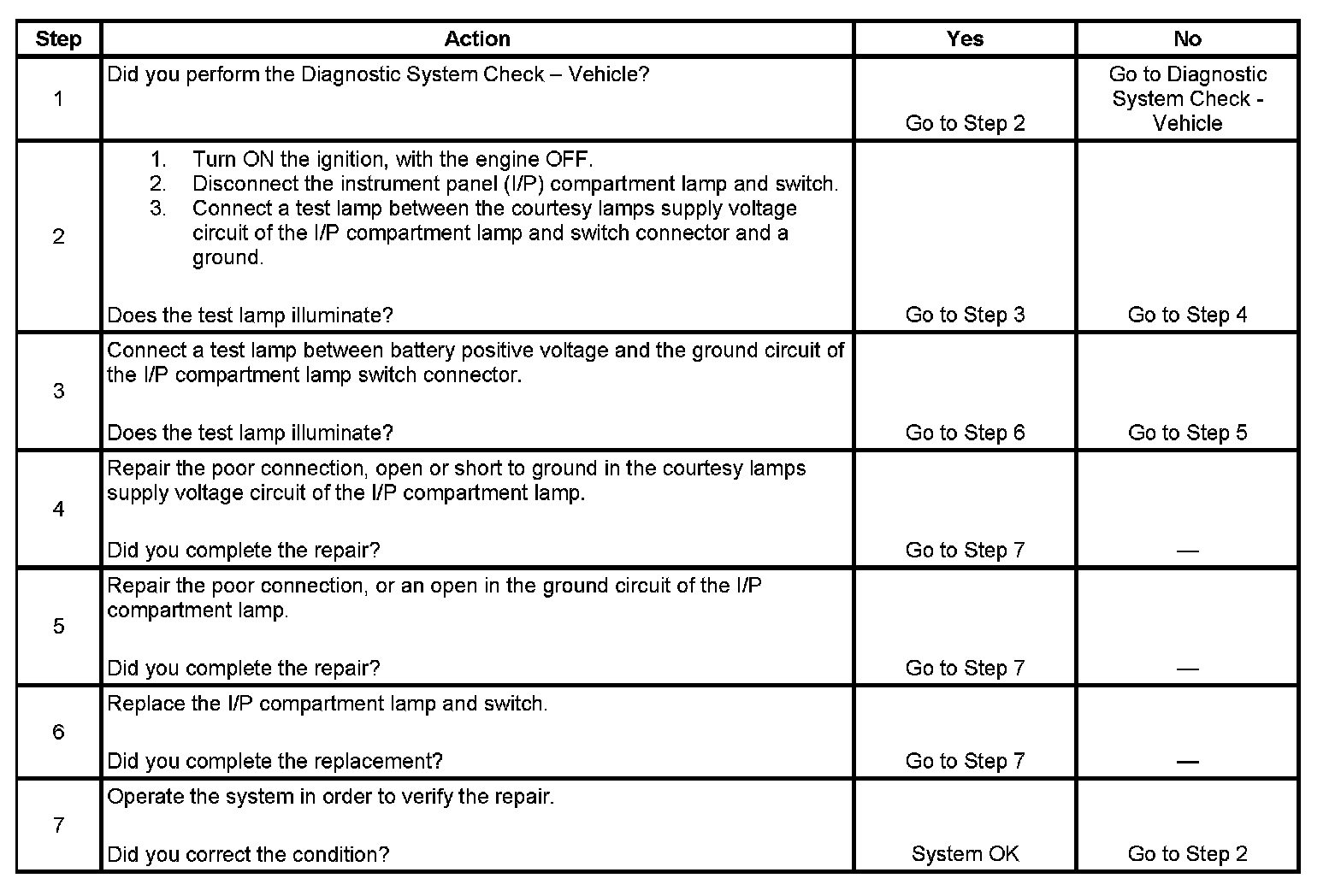 Instrument Panel (I/P) Compartment Lamp Inoperative