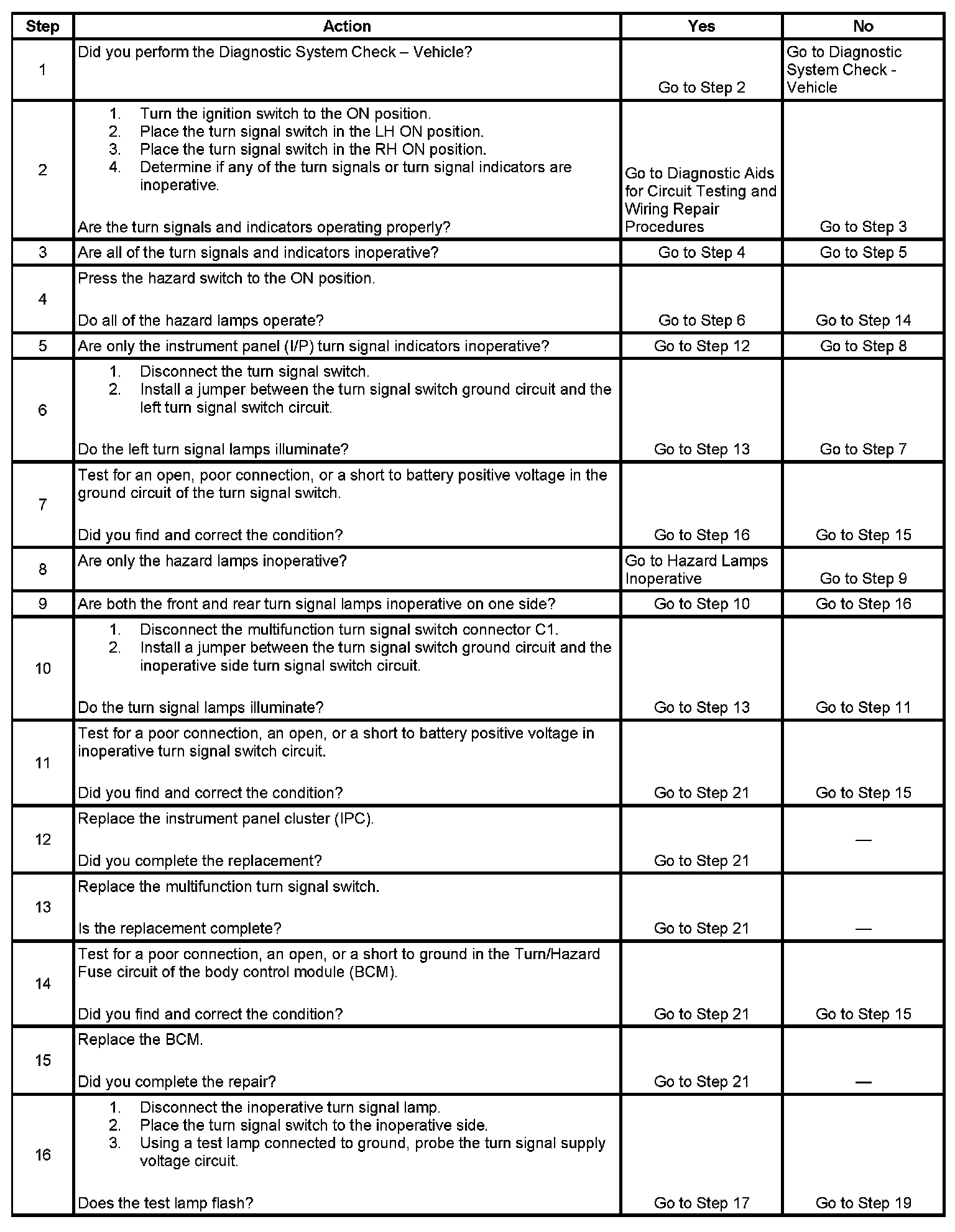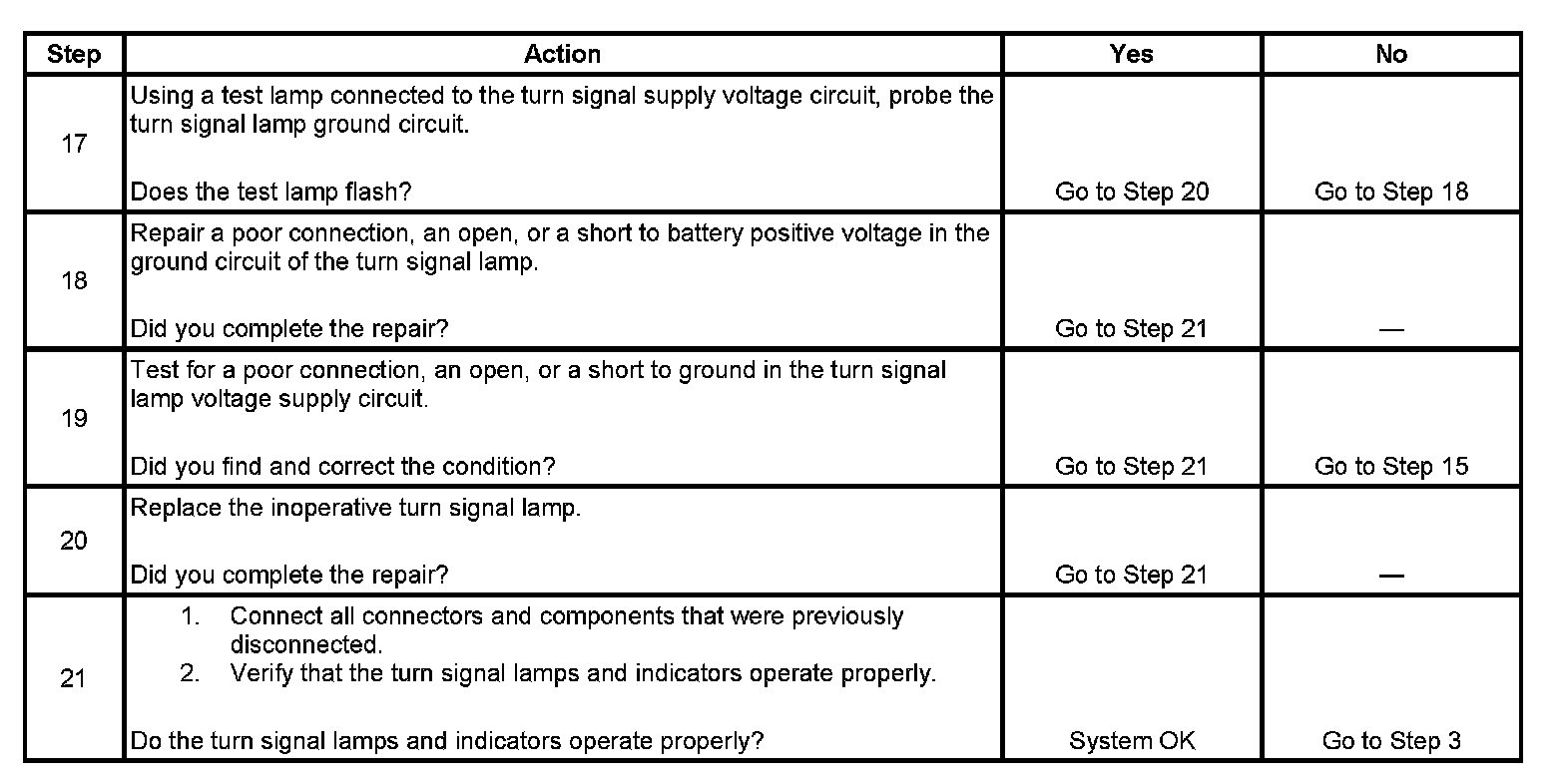 Turn Signal Lamps and/or Indicators Inoperative