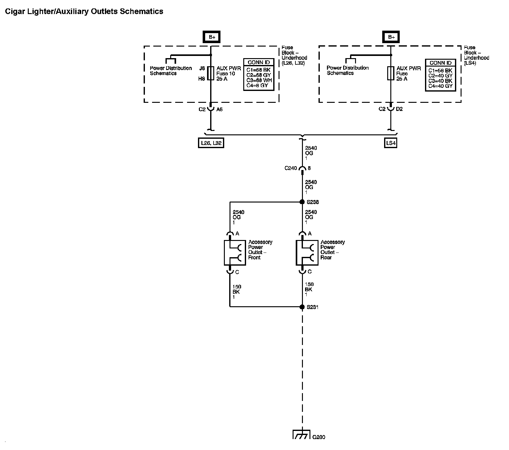 Cigar Lighter/Auxiliary Outlets Diagram: