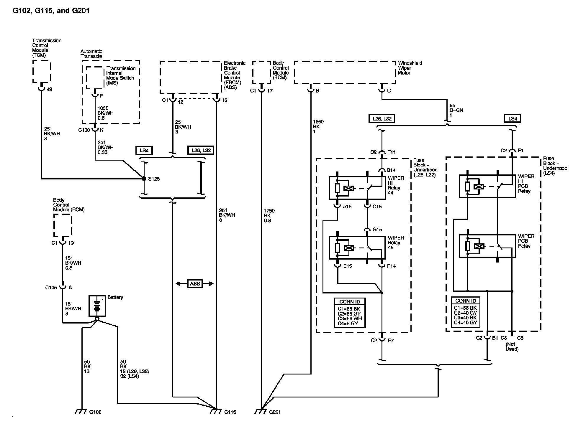 The locations for the Connectors, Grounds, Splices, and Grommets shown within these diagrams can be found via their numbers at Vehicle Locations.
