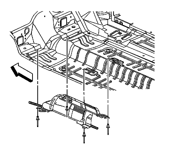 1. Position the catalytic converter heat shield to the underbody.