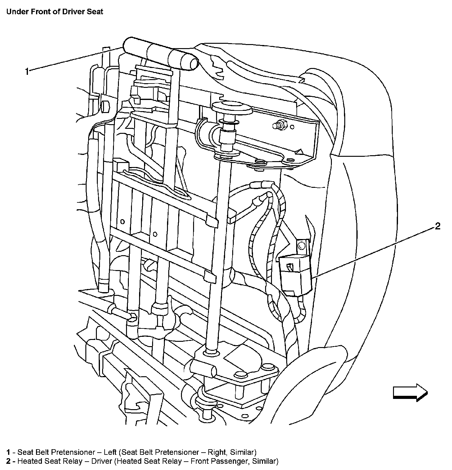 Under Front Of Driver Seat: