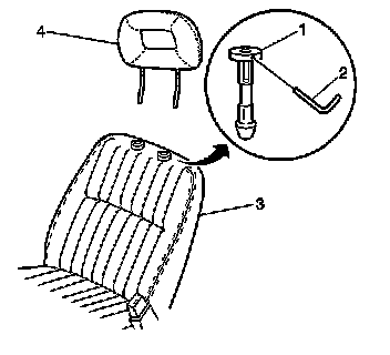 4. Remove the head restraint from the seat back (3).