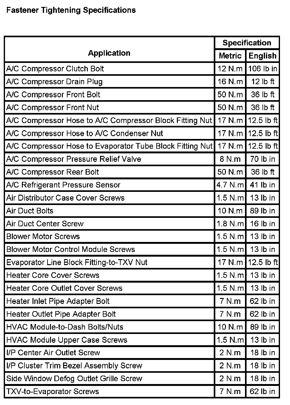 Fastener Tightening Specifications: