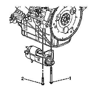 2. Install the starter bolts (1, 2). Finger tighten until seated.