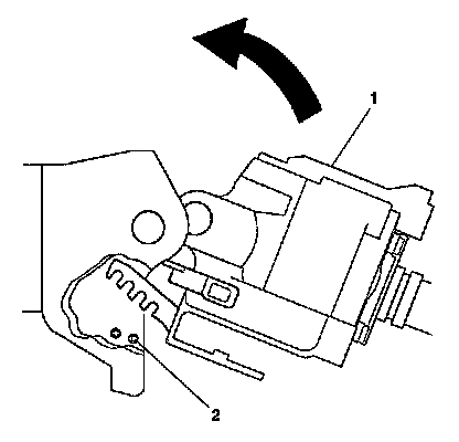 4. Pull the tilt arm in order to disengage the steering wheel lock shoes from the dowel pins (2) in the steering column support assembly.