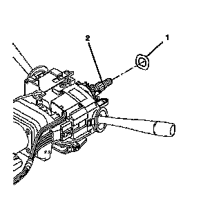 6. Install the wave washer (1) onto the steering column shaft (2).