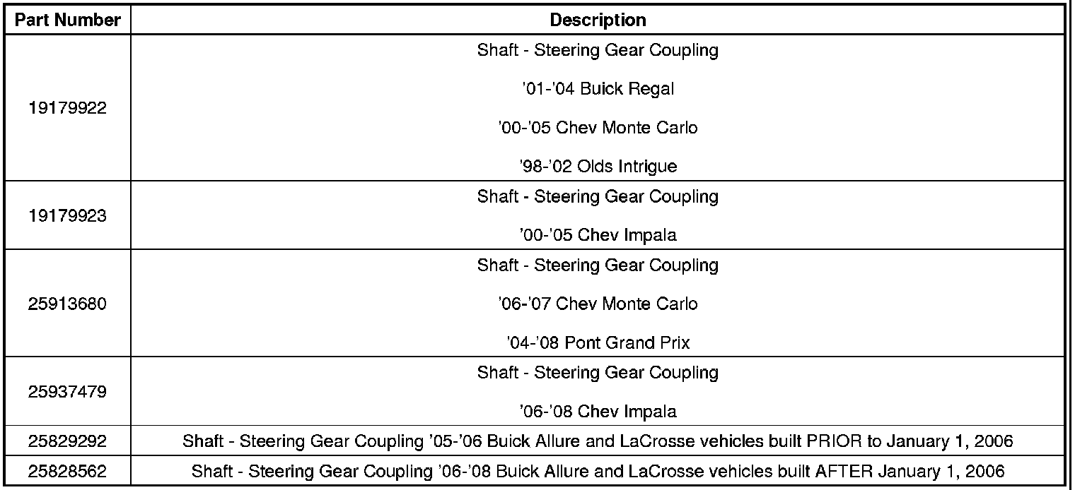 Subject: Clunk Felt/Noise Heard From Steering Column, Steering Gear and/or Front Of Vehicle During Turning Maneuver and/or Steering Wheel Rotation (Replace Intermediate Shaft As Directed)
