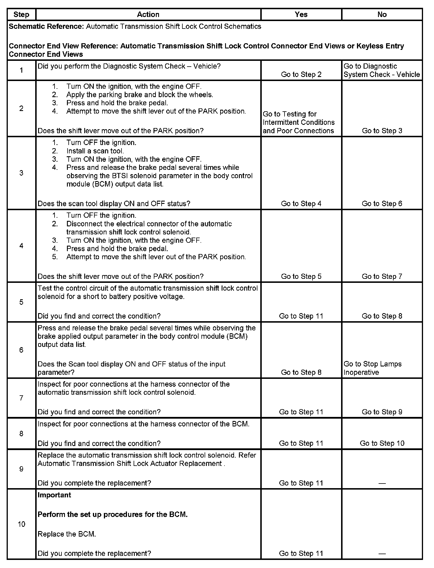 Shift Lever Does Not Move With Brake Pedal Depressed