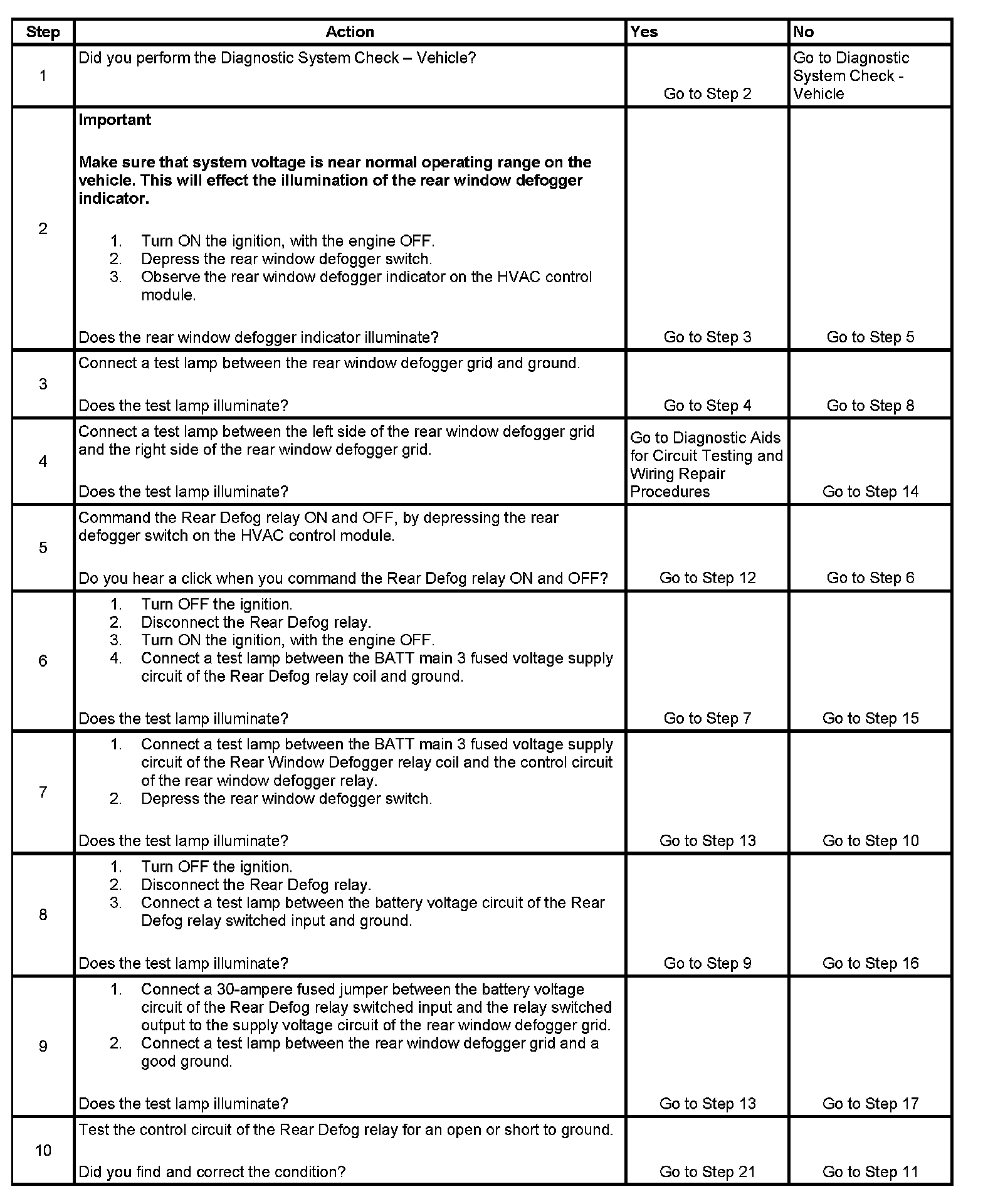 5. Listen for an audible click when the Rear Defog relay operates. Command both the ON and OFF states of the Rear Defog relay. Repeat the commands as necessary.