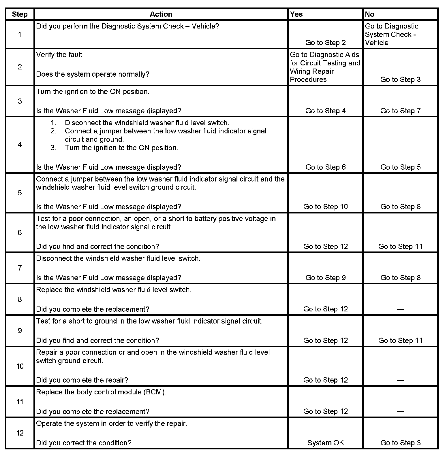 Low Washer Fluid Indicator Malfunction