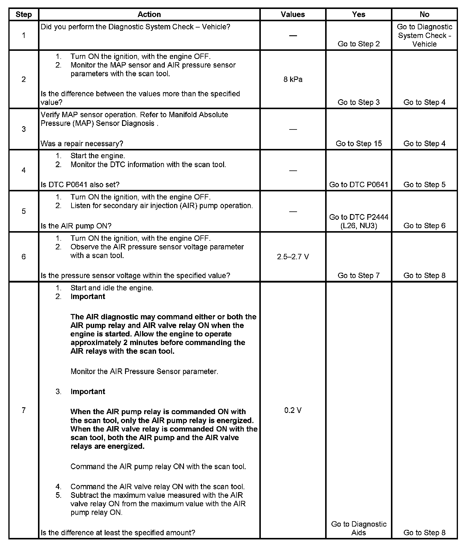 5. DTC P2444 will locate and repair the cause of an AIR pump stuck in the ON position.