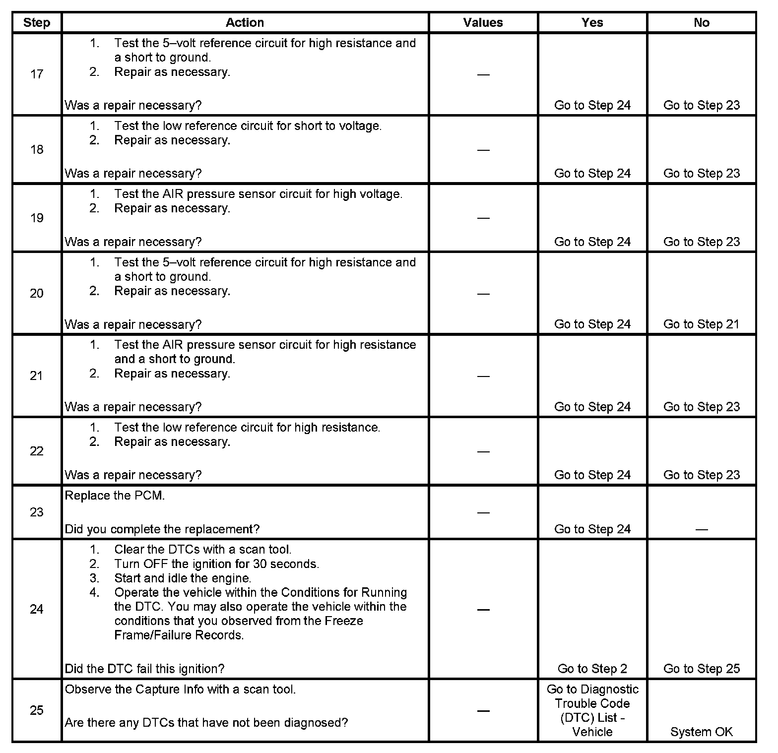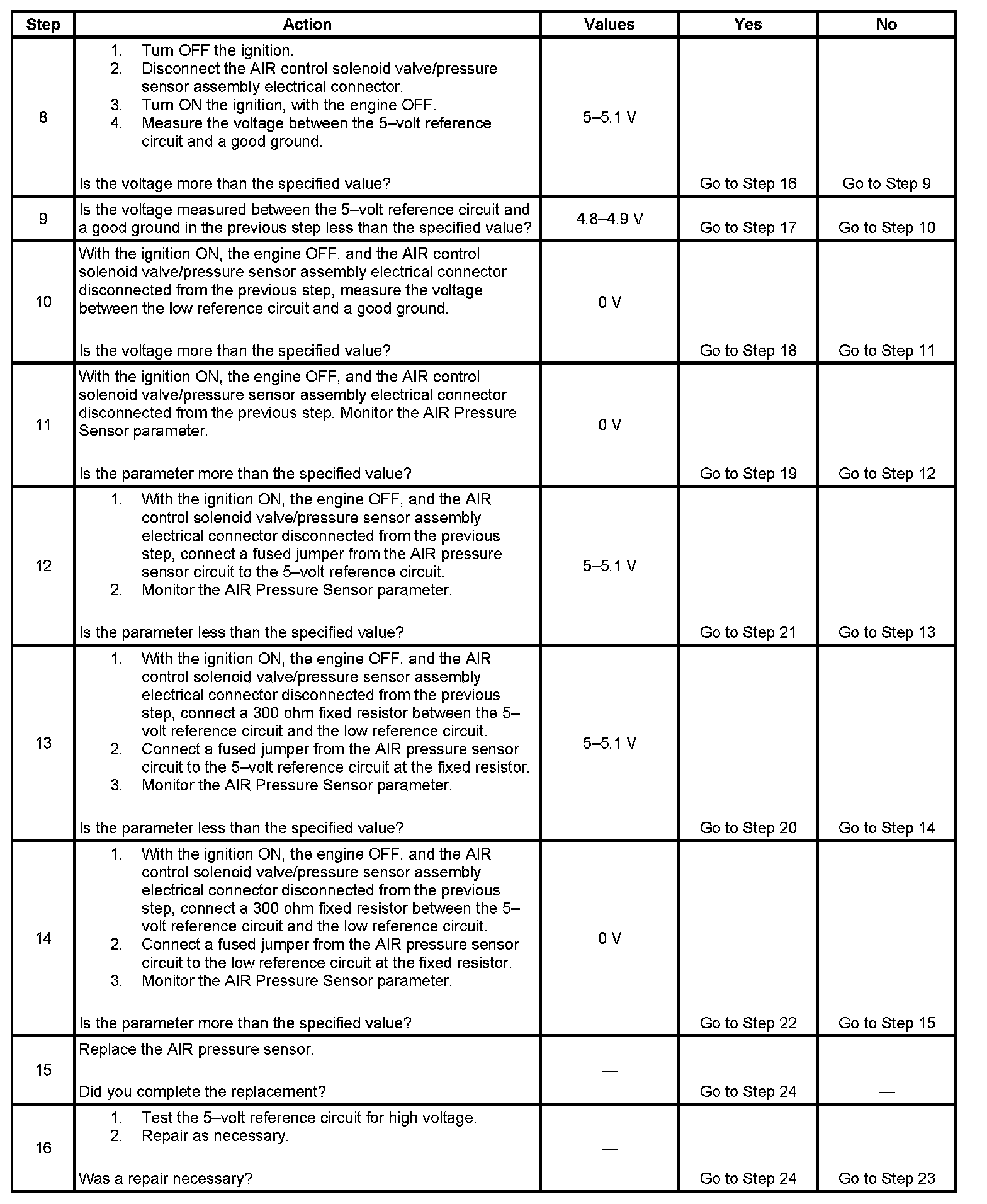 15. The low reference, the AIR pressure signal, the 5-volt reference circuits and the PCM have tested OK. Replace the AIR control solenoid valve/pressure sensor assembly.