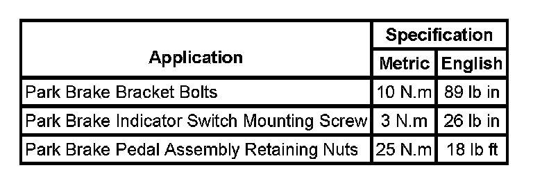 Parking Brake System: Specifications