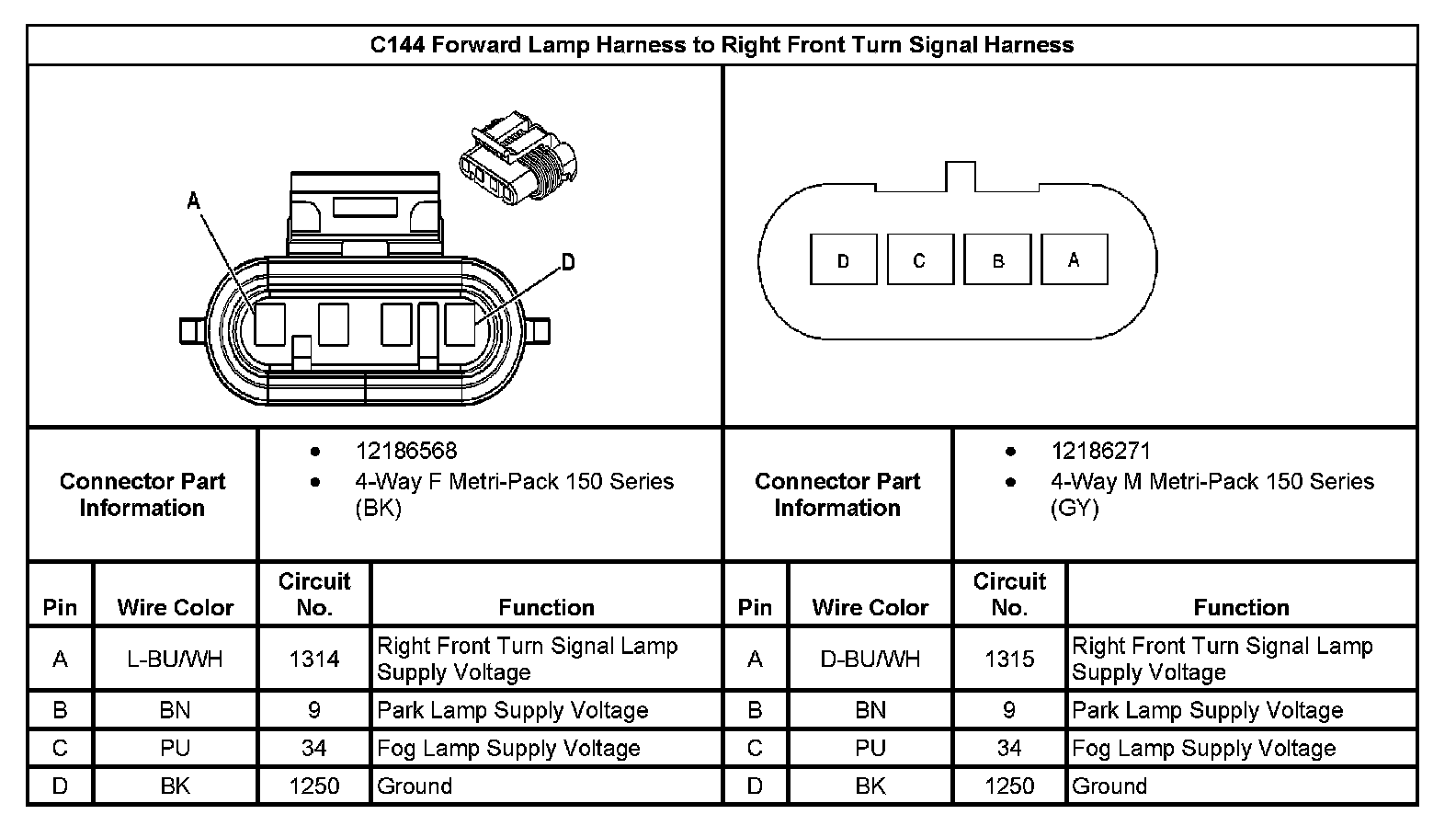 C144 Forward Lamp Harness To Right Front Turn Signal Harness: