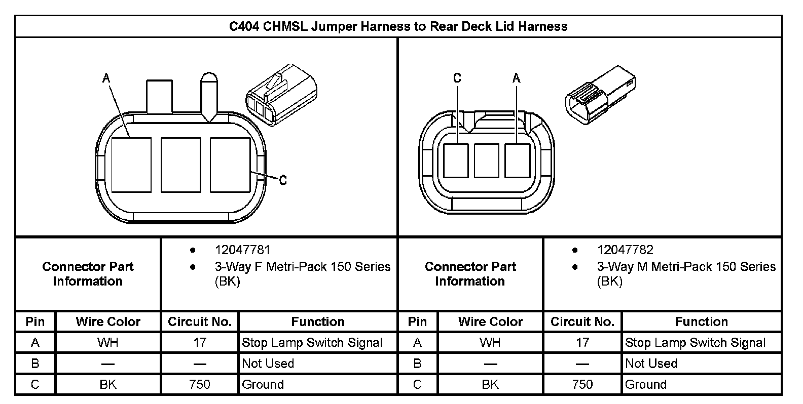 C404 CHMSL Jumper Harness To Rear Deck Lid Harness: