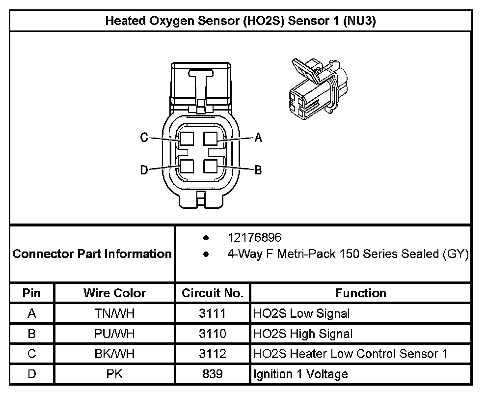 Heated Oxygen Sensor (HO2S) Sensor 1 (With RPO Code NU3):