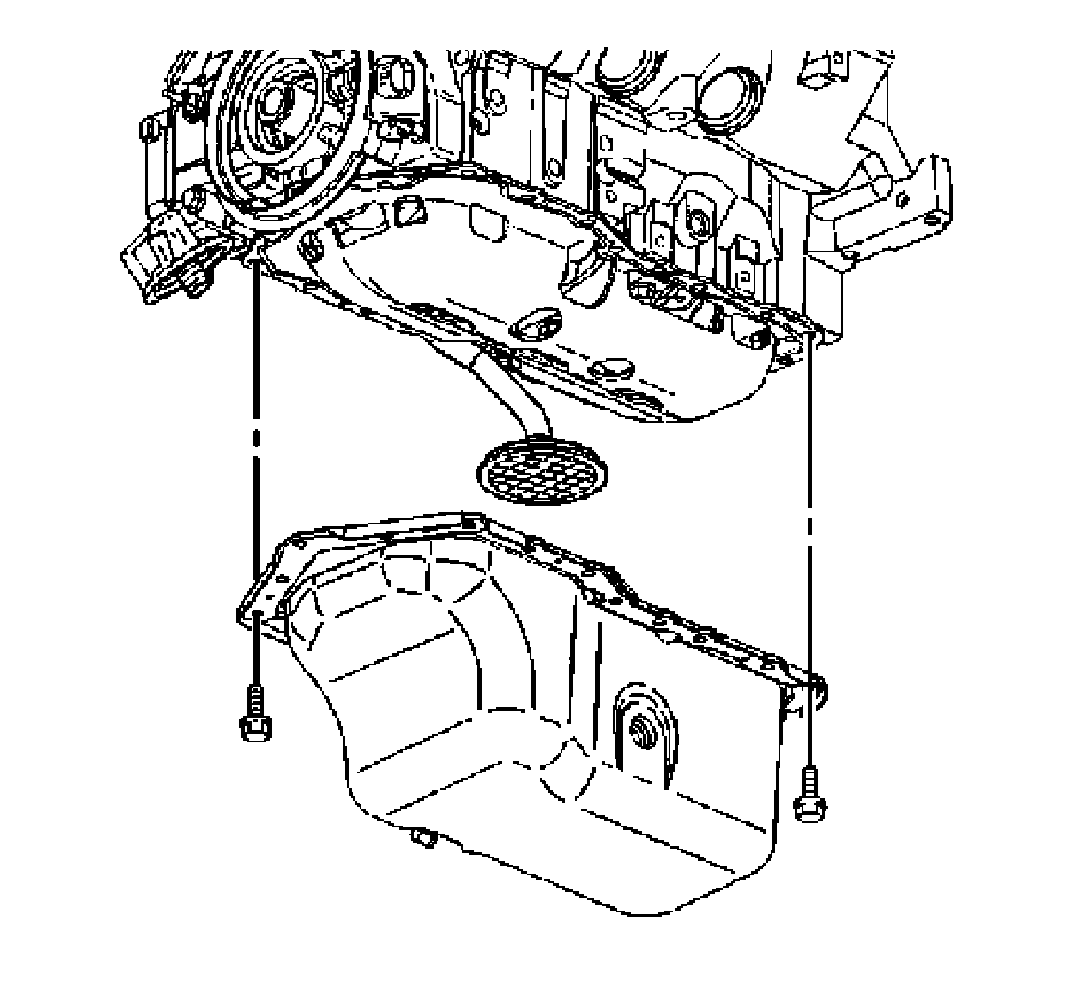 Notice: Remove the oil level sensor, located in the oil pan, before the oil pan is removed. The sensor may be damaged if the oil pan is removed first.