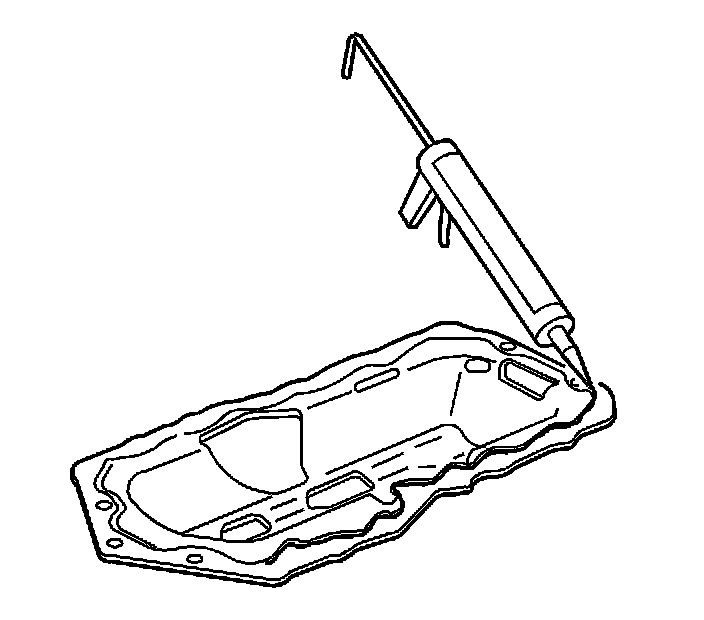 6. Apply a continuous bead 6.35 mm (0.25 inch) thick of RTV sealer GM P/N 12378521 (Canadian P/N 88901148) to the bottom side of the new windage tray gasket. Apply the RTV sealant directly over the sealing bead.
