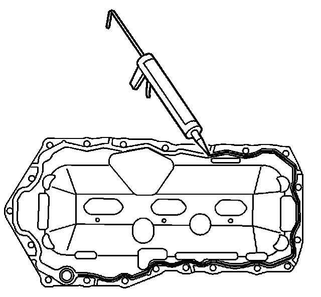 7. For aluminum oil pans, apply a continuous bead 6.35 mm (0.25 inch) thick of RTV sealer GM P/N 12378521 (Canadian P/N 88901148), ensuring that the sealer also completely fills the groove in the oil pan.