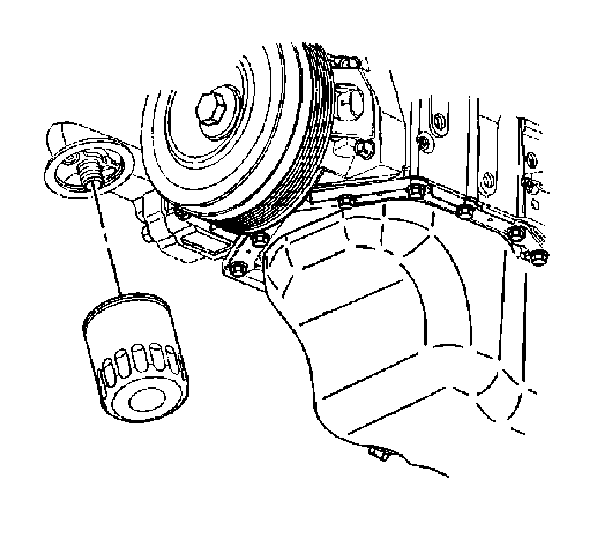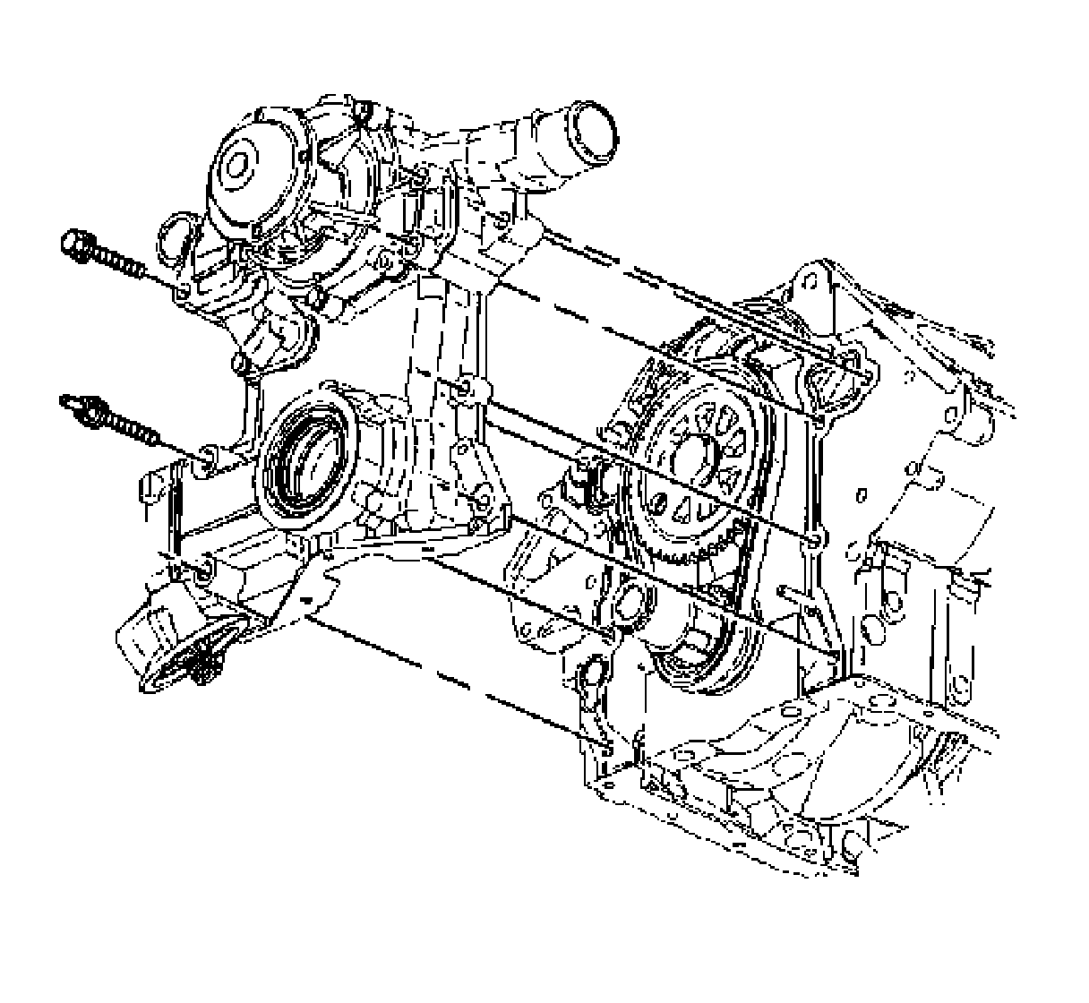 Important: The oil pan can be dropped slightly for engine front cover clearance if all pan bolts are loosened and the oil level sensor is removed.