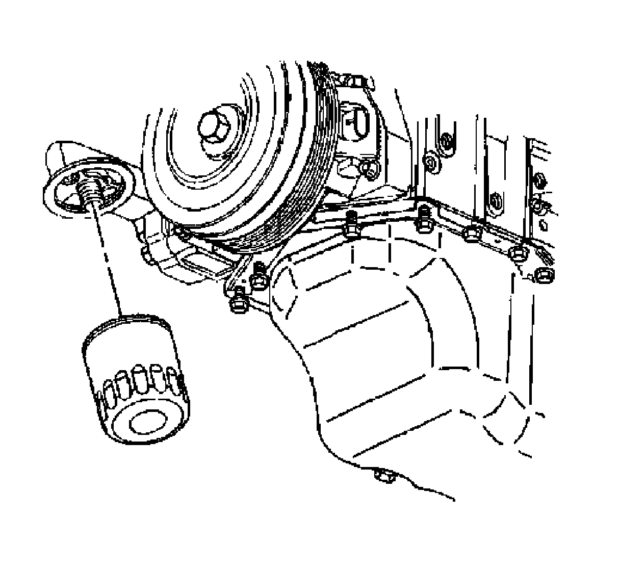 6. If replacing the engine front cover, install the pressure relief valve, the oil filter adapter and the oil filter adapter bolts to the engine front cover.