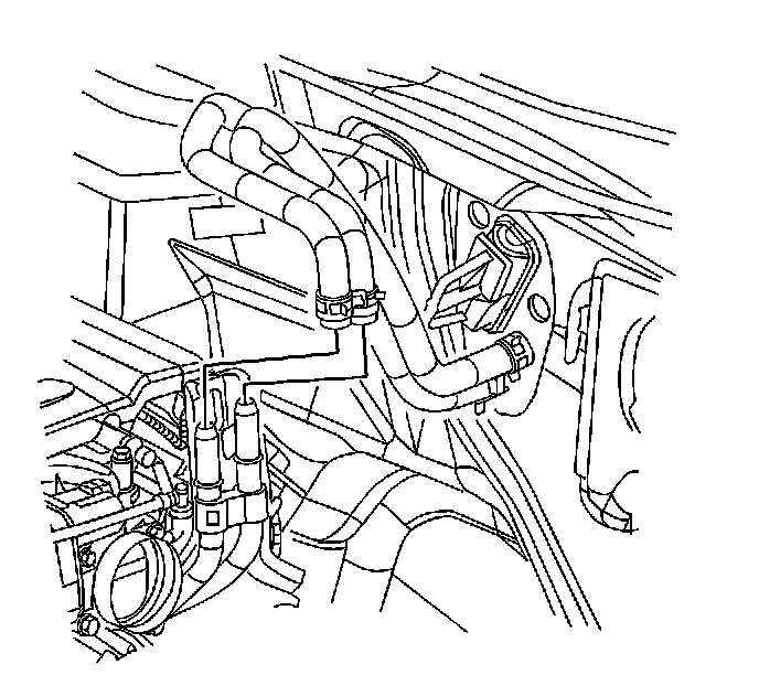 4. Reposition and release the heater pipe hose clamps at the engine using the J 38185.