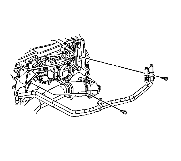 6. Install the heater pipe assembly retaining bolts to the rear of the engine.