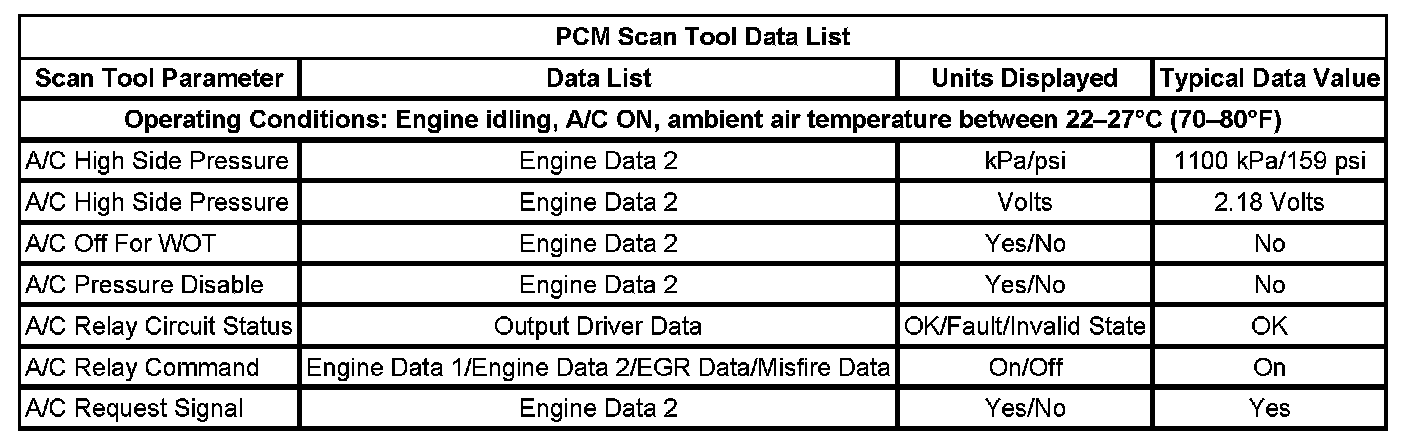 The scan tool data values were taken from a known good vehicle under the following conditions: