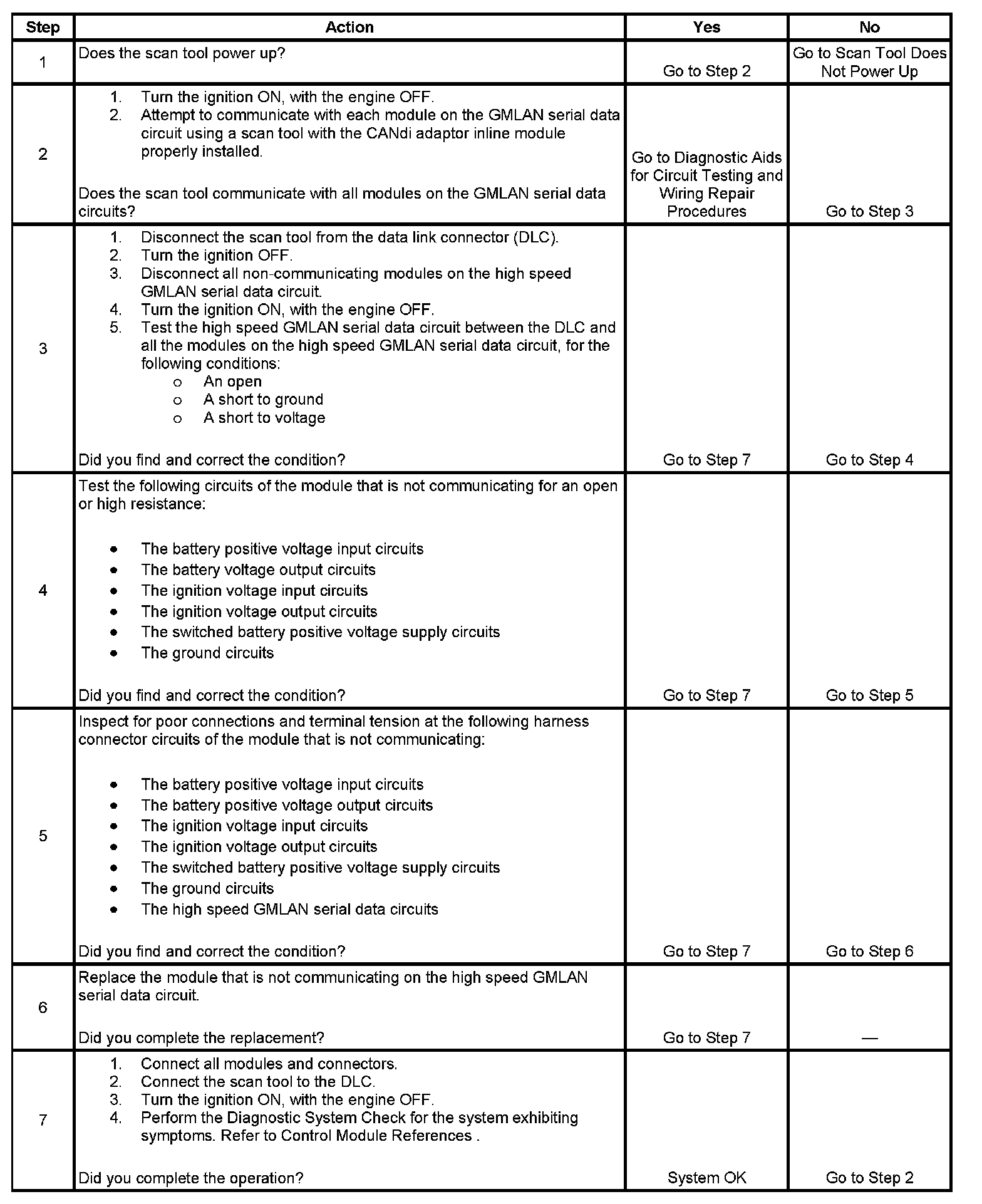 The engine will not start when there is a total malfunction of the GMLAN serial data circuits while the engine is not running. The following conditions may cause a total loss of GMLAN data communication: