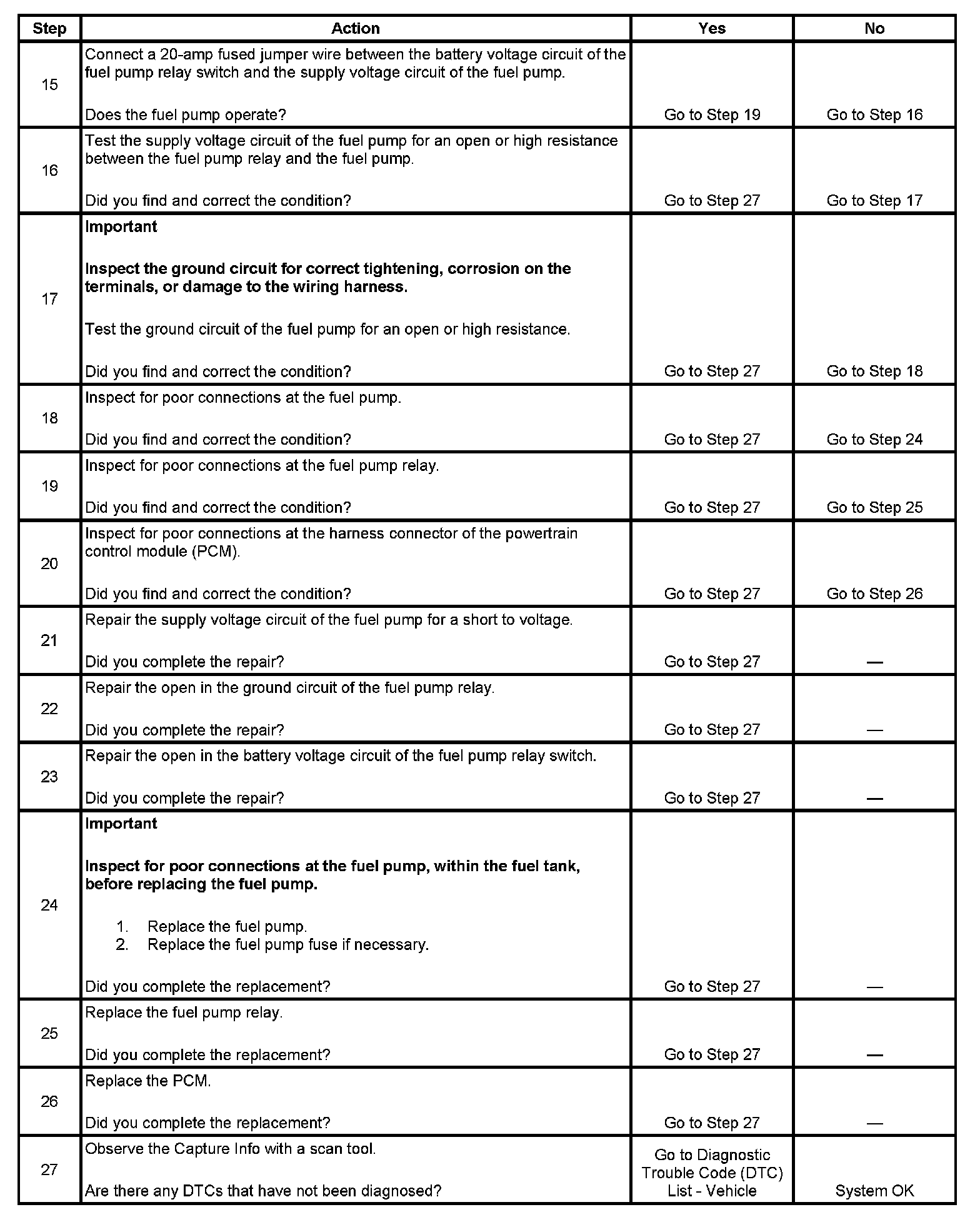 13. This step determines if the condition with the circuit is intermittent. If the fuse does not open, inspect the supply voltage circuit between the fuse and the fuel pump for an intermittent condition.