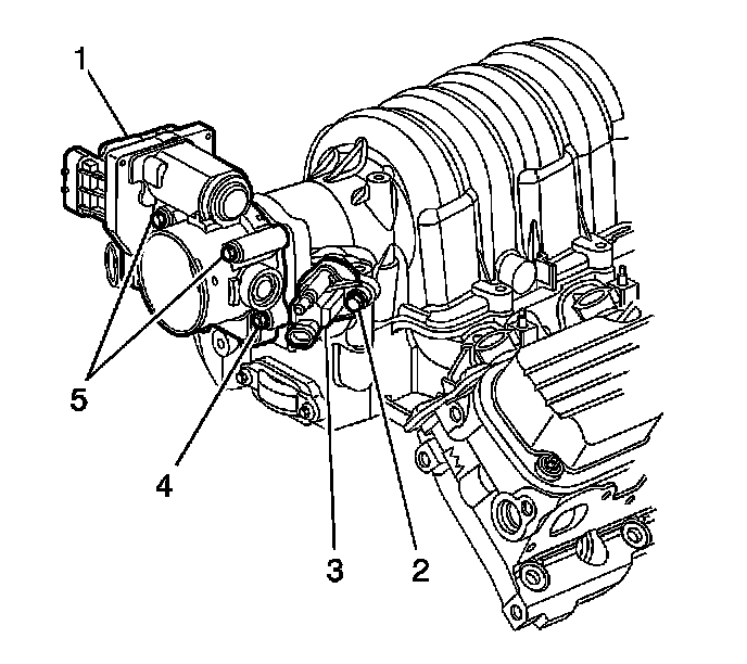 5. Remove the throttle body nuts (4) and the bolts (5).