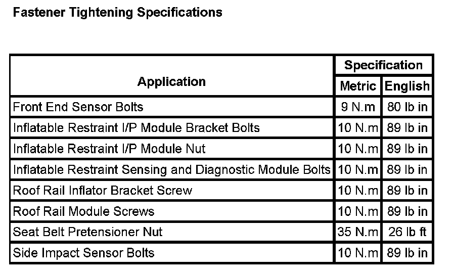 Fastener Tightening Specifications: