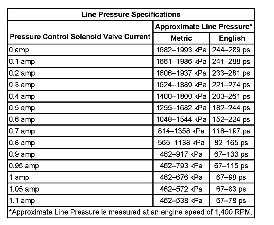 Line Pressure Specifications: