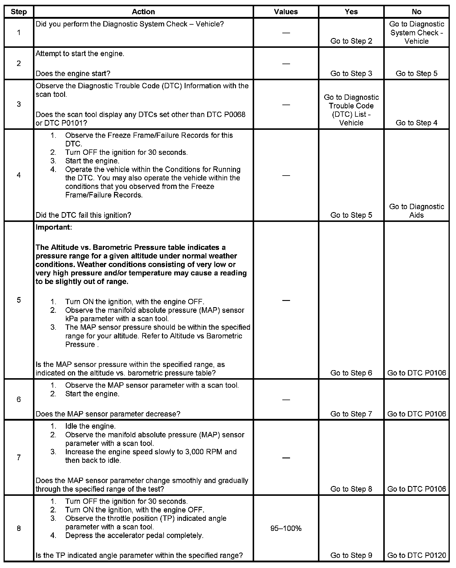 5. This step will determine if the MAP sensor pressure is within the proper range for a given altitude.