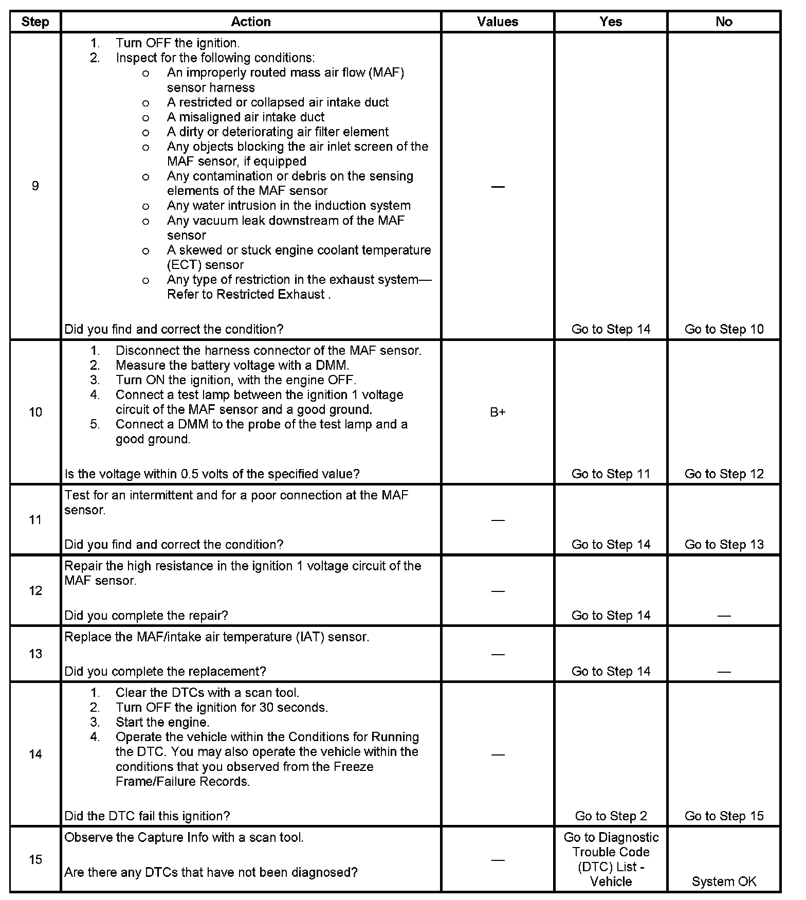 9. This step will determine if any mechanical faults have caused this DTC to set.