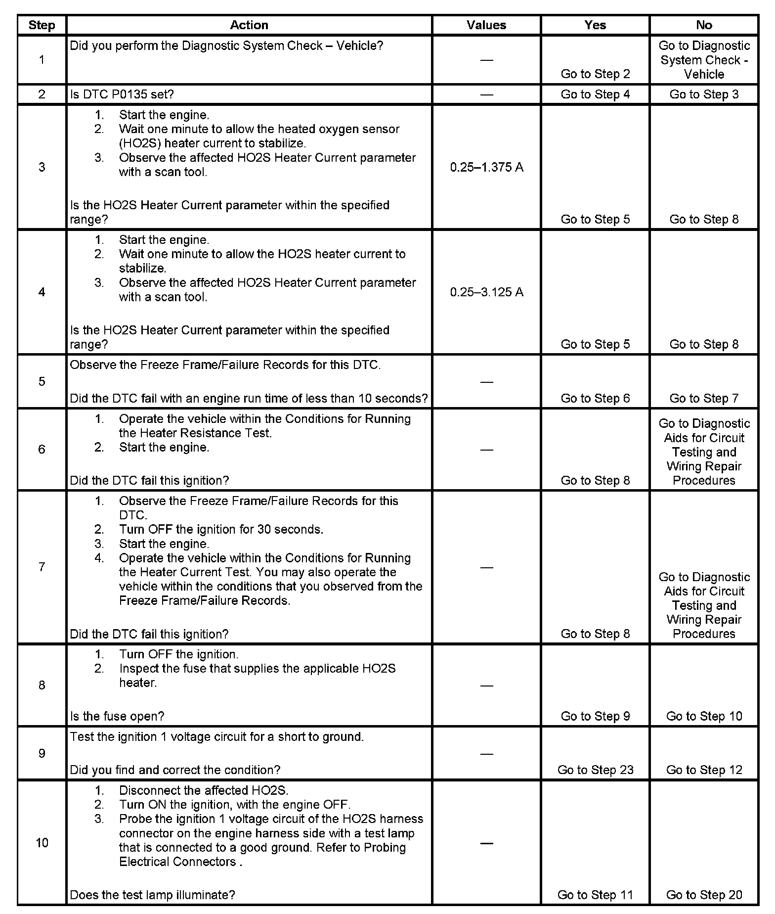 - The ECM detects that the affected HO2S Heater Current parameter is more than 3.125 amps or less than 0.25 amps.