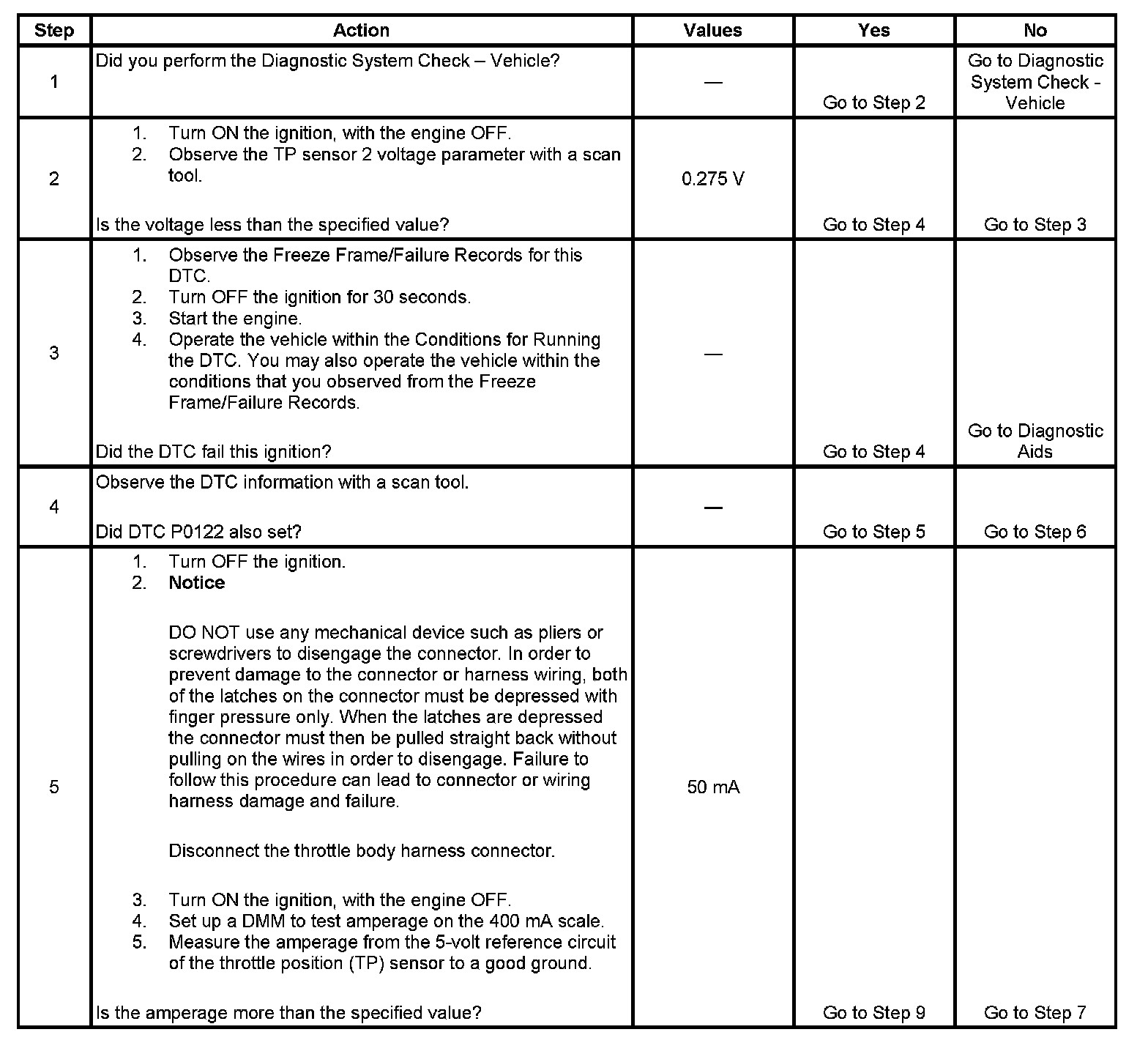 4. The TP sensors share a 5-volt reference circuit. If both DTCs P0122 and P0222 set, test for a condition in the 5-volt reference circuit.
