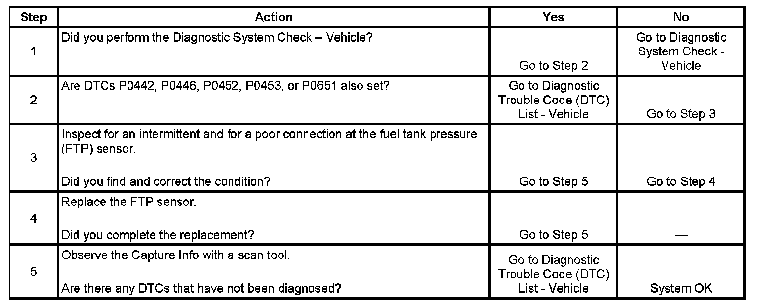 If, during the engine-off natural vacuum small leak test, P0442, the engine control module (ECM) detects an abrupt FTP signal change other than a refueling event, this DTC will set.